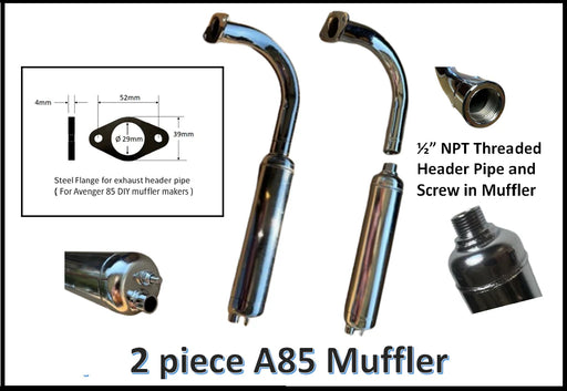 Compatible with A85 2 Piece Avenger 85 muffler and header PP = Pecker Pipe for a new and complete muffler system. 52mm Bolt Spacing Includes A85 ...